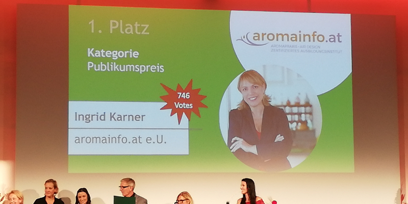 Auszeichnung in der Kategorie Publikumspreis bei der Wahl zur Unternehmerin des Jahres. Verleihung im Europasaal der Wirtschaftskammer Steiermark.