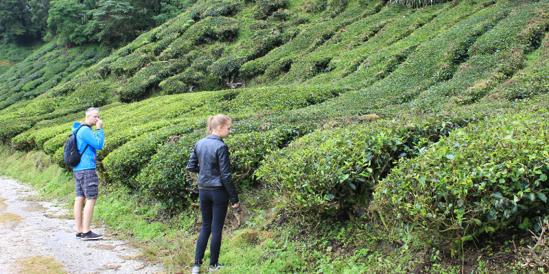 Studienreise zu Teeplantagen mit Fokus auf Vetiver als natürlichem Korrosions- und Erosionsschutz.
